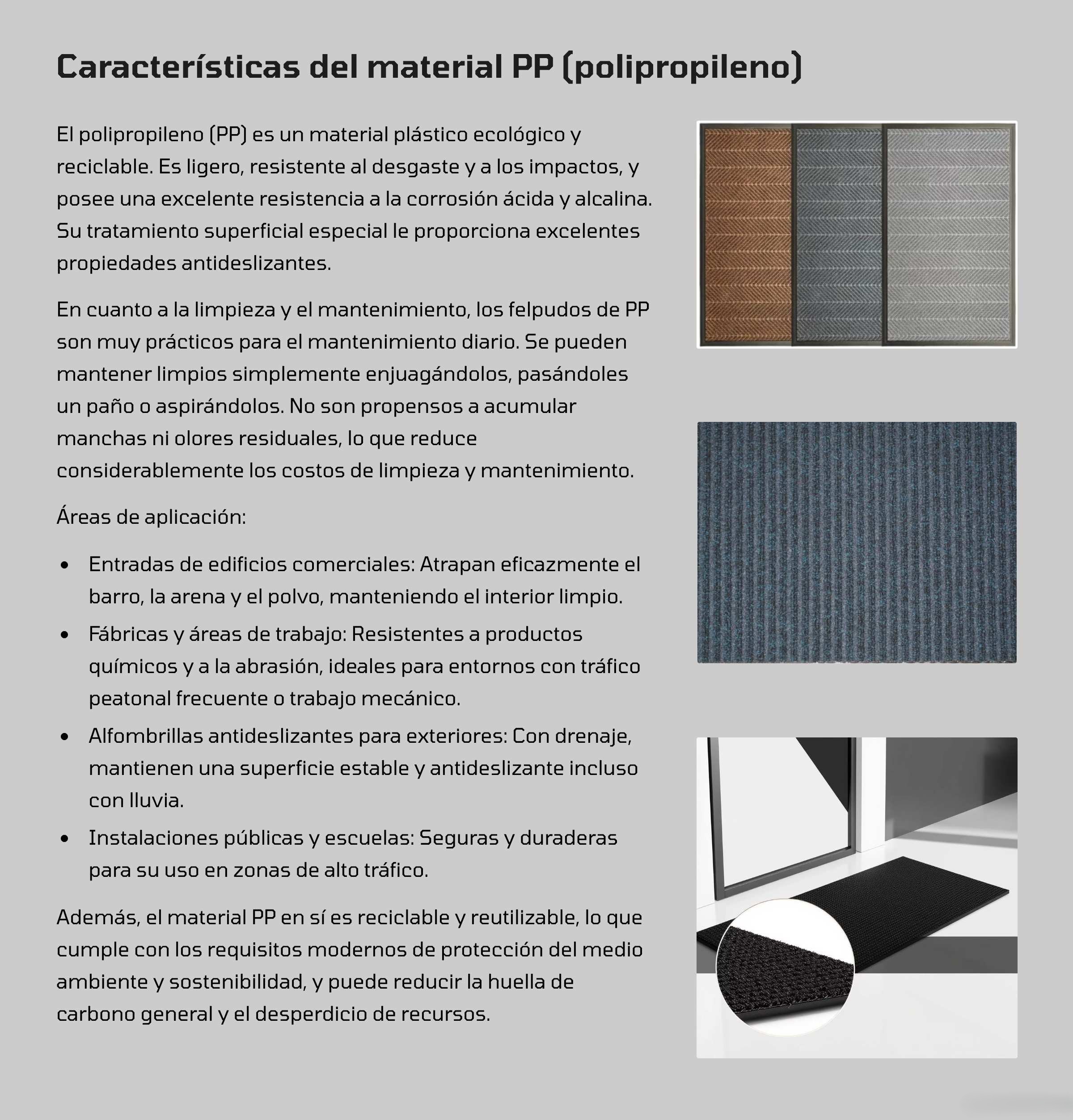 - Opciones de tapetes para gimnasio/fábrica