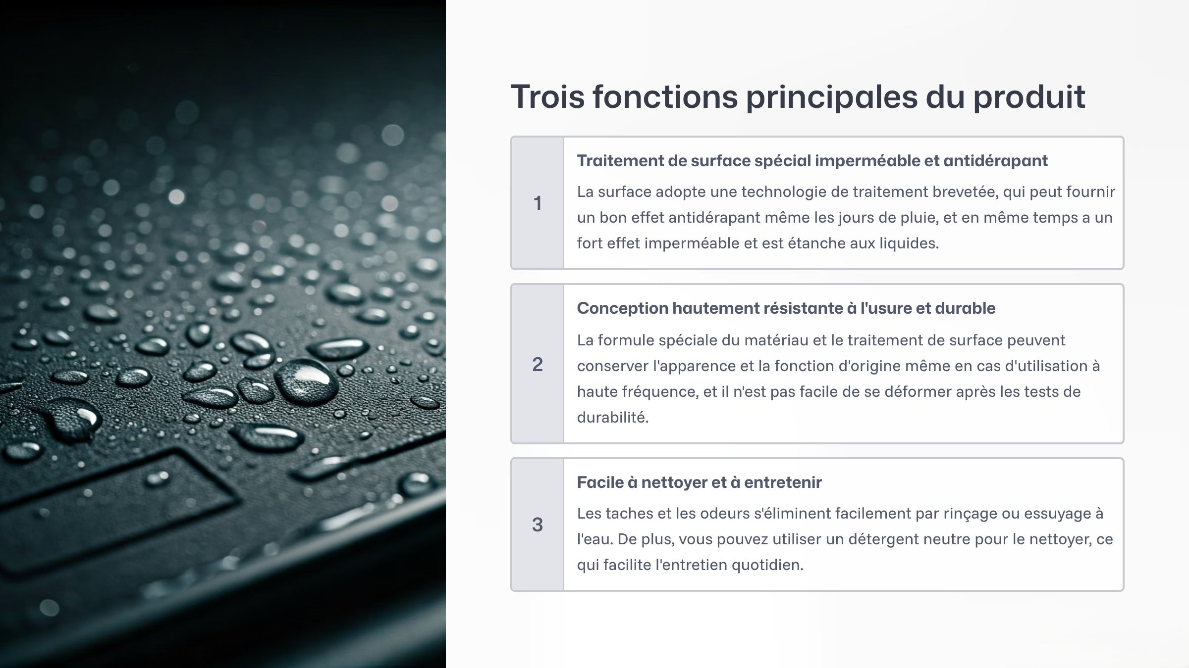 - Amélioration de la sécurité de conduite : Design antidérapant garantissant