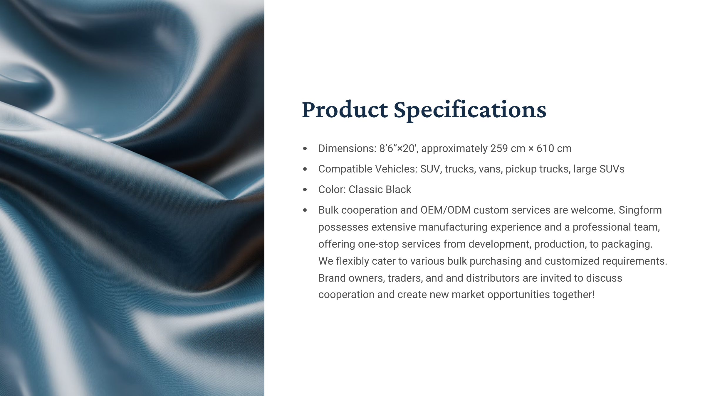 We flexibly accommodate large-volume and custom orders. We welcome discussions with brands, traders, and distributors to create new market opportunities.