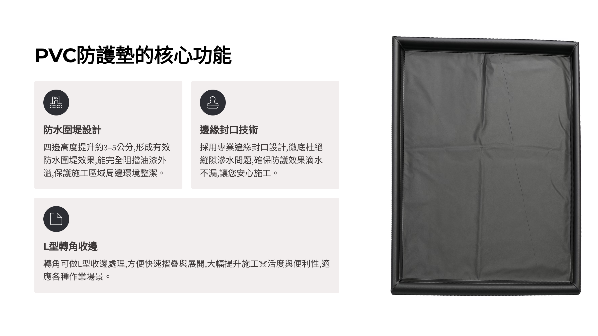 - 邊緣封口設計,避免縫隙滲水。