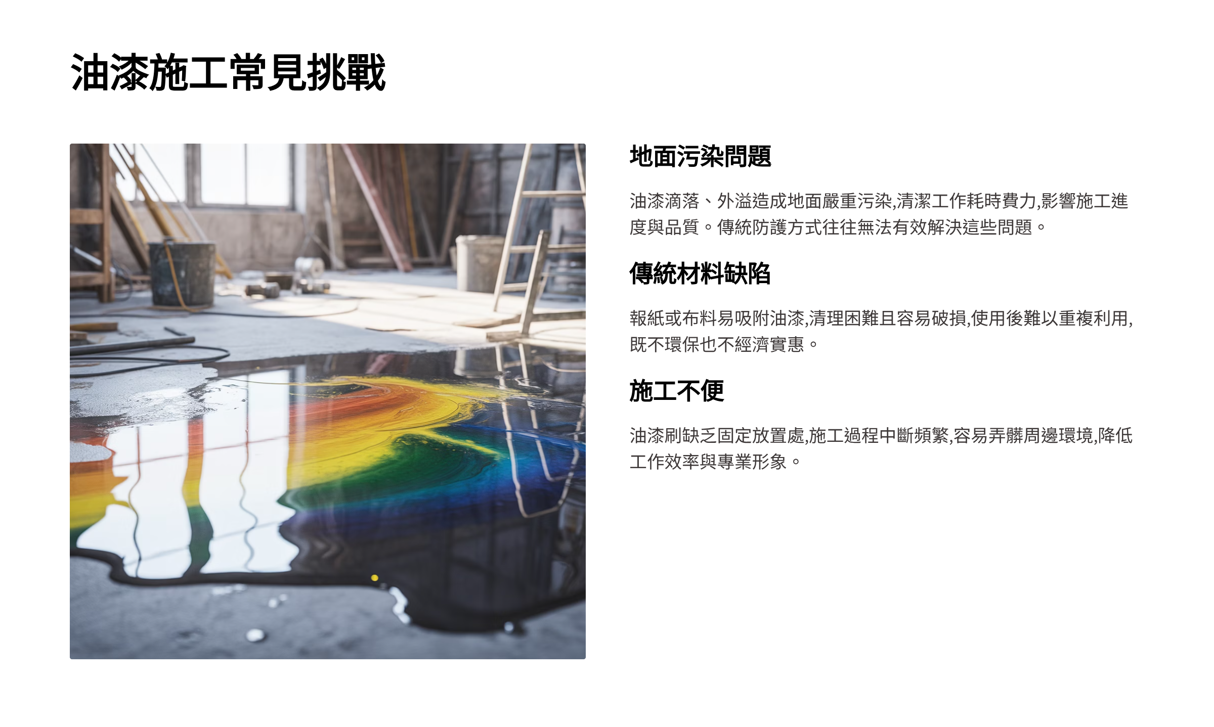 可應用於油漆工作區、攪拌區、家用、商用,可防止油漆流出。